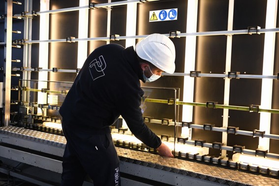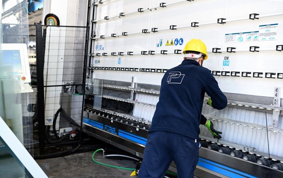 3,000㎡の工場の製造スペースには、2つのFOREL社製「レジデンシャル」複層ガラス製造ラインがあり、「Produce well, or not at all(良い物を作ろう、さもなくば作るな)」というPALUMBO社のモットーに忠実でありながら、様々な種類の注文に最適に対応できるようになっています。