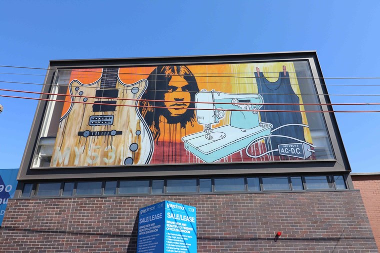 Viridian Glass社は、伝説のロックバンドAC/DCへのトリビュートとして、カスタムデザインのガラスプロジェクトを制作しました。AC/DC(Alternating Current/Direct Current)というバンド名の由来となったミシンコードの有名なタグや、バンド創設者の一人であるマルコム・ヤングを、グラフィックで表現しています。