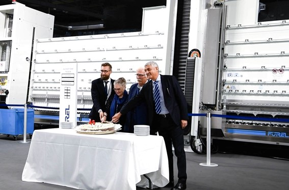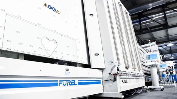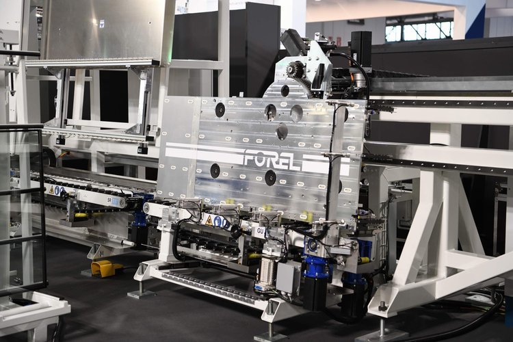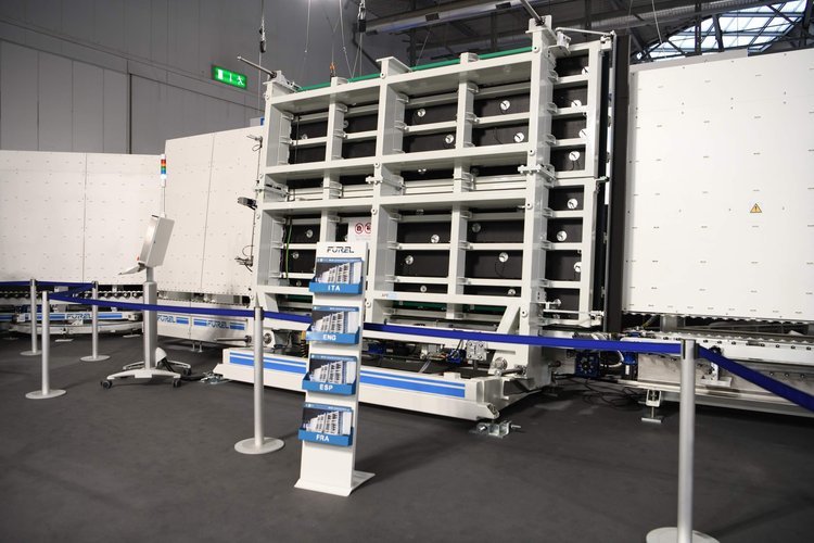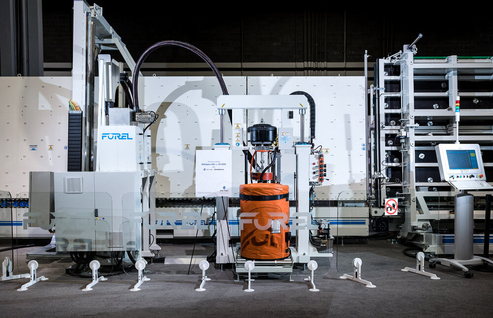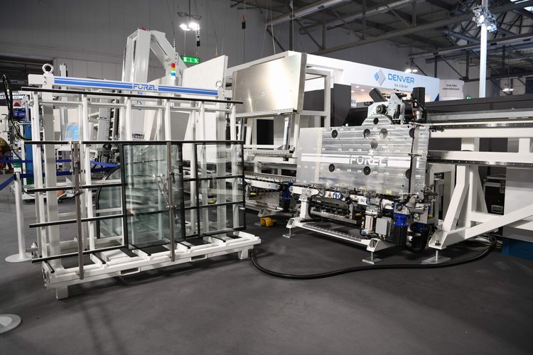 ソーティングシステム、リジットタイプスペーサーとTPS(熱可塑性)スペーサーを兼用可能な複層ガラス製造ライン、縦型加工ライン(コバ加工、穴あけ・ミーリング加工、洗浄乾燥)など、完全に自動化された製造ラインが、FOREL社のブースでVITRUMの期間中(4日間)稼動しました。