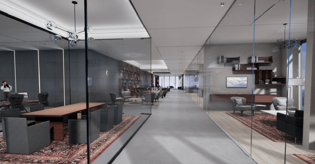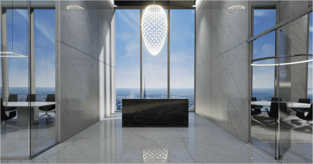 本プロジェクトでは50,000㎡近くの強化合わせ複層ガラスが使用されており、表面にはGuardian社の50/32ソーラーコーティングが施されています。これにより、室内の明るさ、省エネを実現し、LEED及びWELL認証も取得しています。Tvitec社は同ビルの格式高いロビー向けに大型内装ガラスも供給しました。