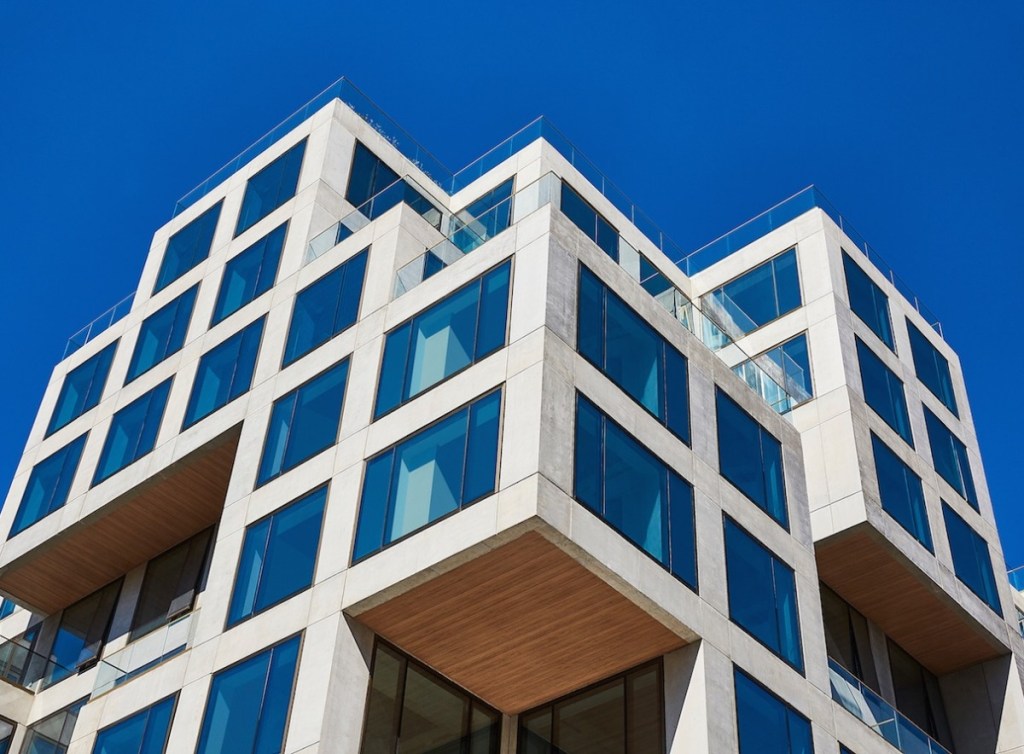 98Frontはニューヨークのブルックリン地区に所在する、大型デザイナーズマンションで、ODA Architects社により設計され、ハイセンスな外観はブルックリンの街並みでもひと際注目を集めています。Tvitec社は、本プロジェクト向けにGuardian社の50/32ソーラーコーティングが施された複層ガラスを供給し、ガラスはコンクリートキューブと不規則に組み合わされ、特徴的な外観を演出しています。