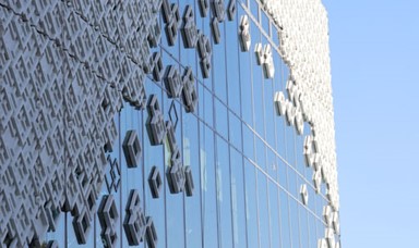 パール=ディユー地区のモダン化をテーマに、MVRDV社とSUD Architectes社が設計を担当しました。Tvitec社製からは、合わせガラスを使用した複層ガラスが供給されており、白色のプリキャストコンクリート材で作製された装飾ブロックと組み合わせられました。