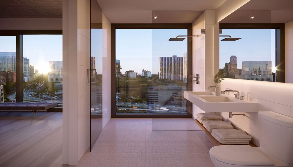 ニューヨーク・マンハッタンエリアでも最大となる全長427mの本物件には、外装にTvitec社のガラスと美麗なテラコッタ材を使用しており、KPF Architects社により設計されました。