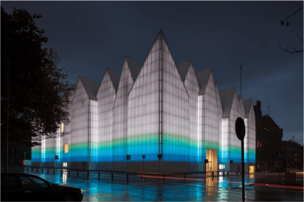 2014年に完成した本物件は音楽ホールですが、音楽の都ともいわれるポーランドにふさわしく、独創的なデザインにより設計されました。ガラスファサードの上には雪をイメージした外装材が追加されており、さらにライトアップ光源も組み込まれています。Q4Glass社は本物件向けに高透過合わせガラスを約2,600㎡供給しました。建物の構造上多数の異形ガラスも必要となりました。