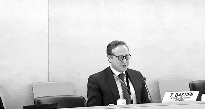 欧州板ガラス協会会長Philippe Bastien氏は、国際ガラス年の開会式のためにジュネーブの国際パレスに出席しました。彼の講演はまるでタイムトラベルのように、参加者を90年台に引き戻し、過去30年間の板ガラス産業の発展を振り返りながら、2050年に向けて、責任ある革新的な板ガラス産業が持続可能な挑戦をしていく未来を予見させるものでした。