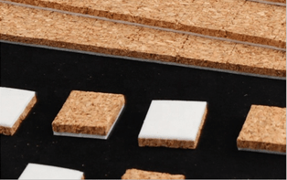 また、同社ではコルク製の他、エチレン酢酸ビニル共重合樹脂(EVA)製のセパレータパッドもお取り扱い致しております。白、黒、赤、青等に着色されているため視認性を上げることができ、厚さや硬さ幅広いラインナップのある緩衝材です。