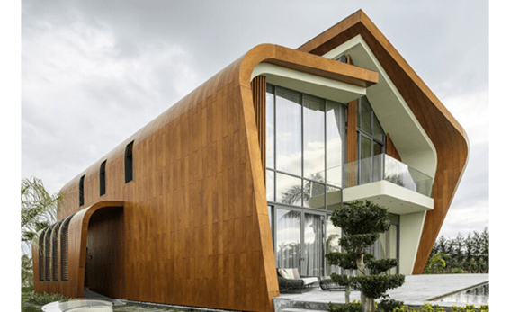 特徴的な木製の外装材は優れたデザイン性を提供するだけでなく、室内へ入光する日射のコントロールを行う役割も持っており、さらに空調性やプライベート空間を利用者に提供します。大自然との融合と共生に徹底的にこだわる為、駐車スペースは地下に作るなど、多様な工夫が行われています。