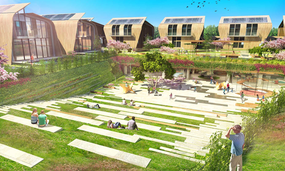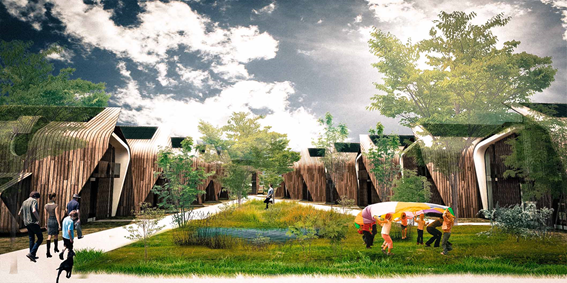 本プロジェクトでは、「大自然との融合と持続可能性に配慮したデザイン」がコンセプトとなっており、施設の正面が北向きになる様に建設され、波上の屋根に設置された太陽光パネルが太陽光を最も有効的に活用できるように考慮されています。
