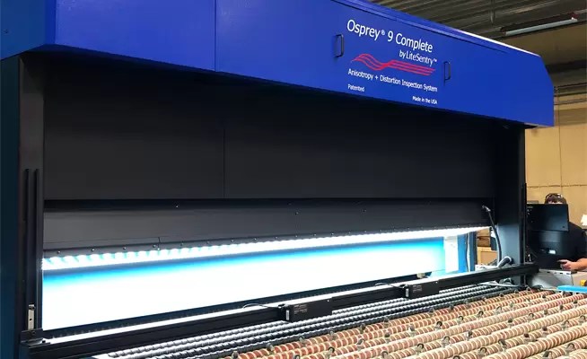 FSG社は、自社で合わせガラスを生産しています。強化合わせガラスや倍強化合わせガラスを生産する場合、合わせガラスの品質を担保するためにも、強化の品質についてしっかりと確認する必要があります。生産する1枚1枚のガラス全数の品質を管理するためには、オンライン(ライン上に設置する)スキャナー型検査装置が最適であることがわかりました。そこで、こういった装置に詳しい企業数社に相談したところ、ほとんどの企業がLiteSentry社のOspreyシステムを薦めてくれました。