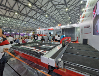中国メーカーはChina Glass 2023でその技術力を発揮し、多種多様な最先端のガラス加工機が展示された (中国メーカーにとっては先進的) 。エッジ加工、ダブルエッジ加工、強化炉、簡易なCNCの従来からのものに加えて、いくつかの大企業や中小企業によって提案されたソーティングシステム、スタッカやバッファー装置、ロボットなど、ガラスの取り扱いや在庫に関する様々なソリューションが導入され、注目すべき傾向が明らかになりました。この傾向は、ガラス加工における自動化と省人化の要求が高まっていることを示しています。また、特殊用途向けの高度な切断技術や超薄型ガラス (自動車や携帯機器に使用されるもの) への業界の関心の高まりを反映して、レーザー切断機も大きな注目を集めました。