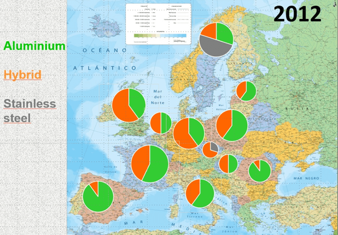 ALUPRO社はこれらのスペーサーの欧州における使用割合の変遷について、次のように説明しています。