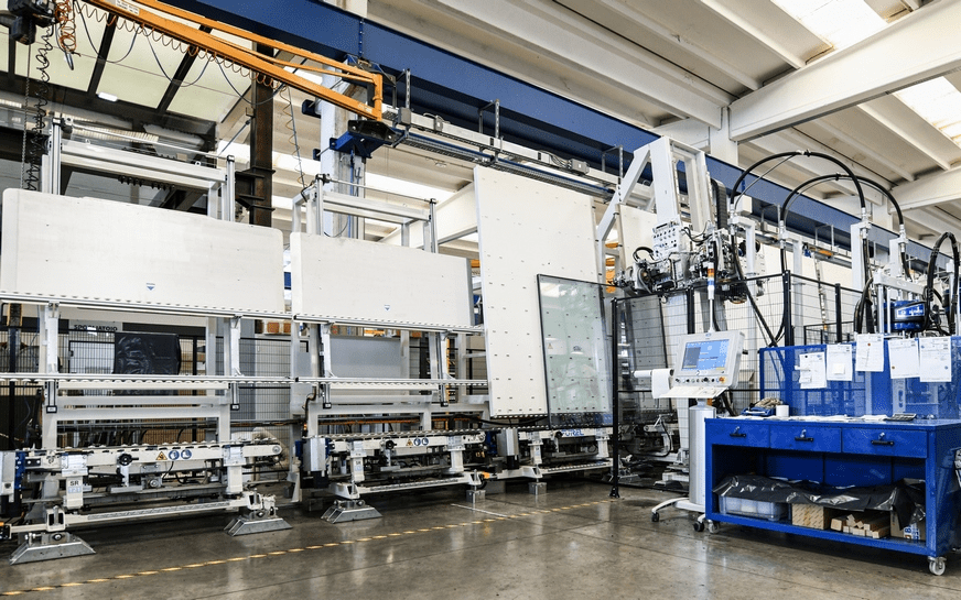 ジャンボ(6000×3300)サイズのダブル複層ガラス(一層)、トリプル複層ガラス(二層)、更にクアトロ複層ガラス(三層)、異形複層ガラスと100mmまでのステップ(段違い)ユニットガラスの製造が可能な工場です。VETRERIA 2M社のように様々な注文に対応し、常に高品質な製品を保証することが求められるガラス工場にとって、非常に柔軟性のあるソリューションです。