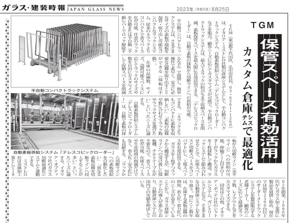 ガラス・建装時報 2023年8月25日号に取り上げていただきました。