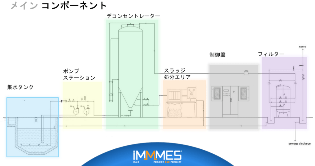 イタリア・IMMMES社は1989年に設立、土木・建築物件への重量構造物の施工から始まり、90年代からガラス加工業界向けの水処理システムの事業を開始しました。大規模な水処理装置のリーディングメーカーとして、世界で500台以上の水処理システムの導入実績があります。