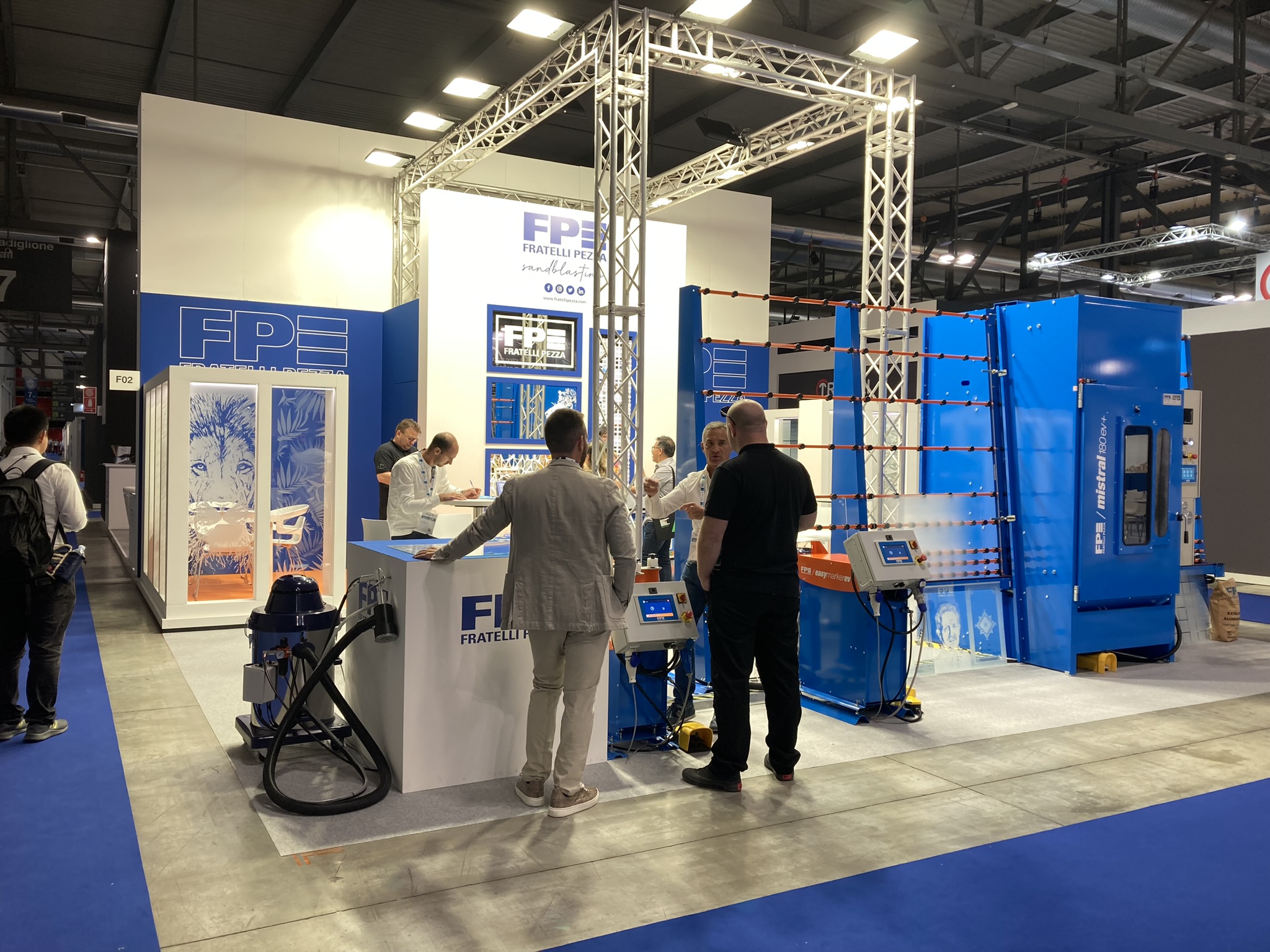 イタリア・Fratelli Pezza社は1970年創業で、石油化学・繊維業界への建築資材サプライヤーとして事業を開始しました。その後ガラス加工機を手掛けるメーカーとなり、現在ではガラスのすり加工を専門とした設備を主力製品としています。世界120ヵ国に500台以上の出荷実績があり、高い意匠性が求められる内装・装飾ガラスの加工で多様なニーズに応えてきました。