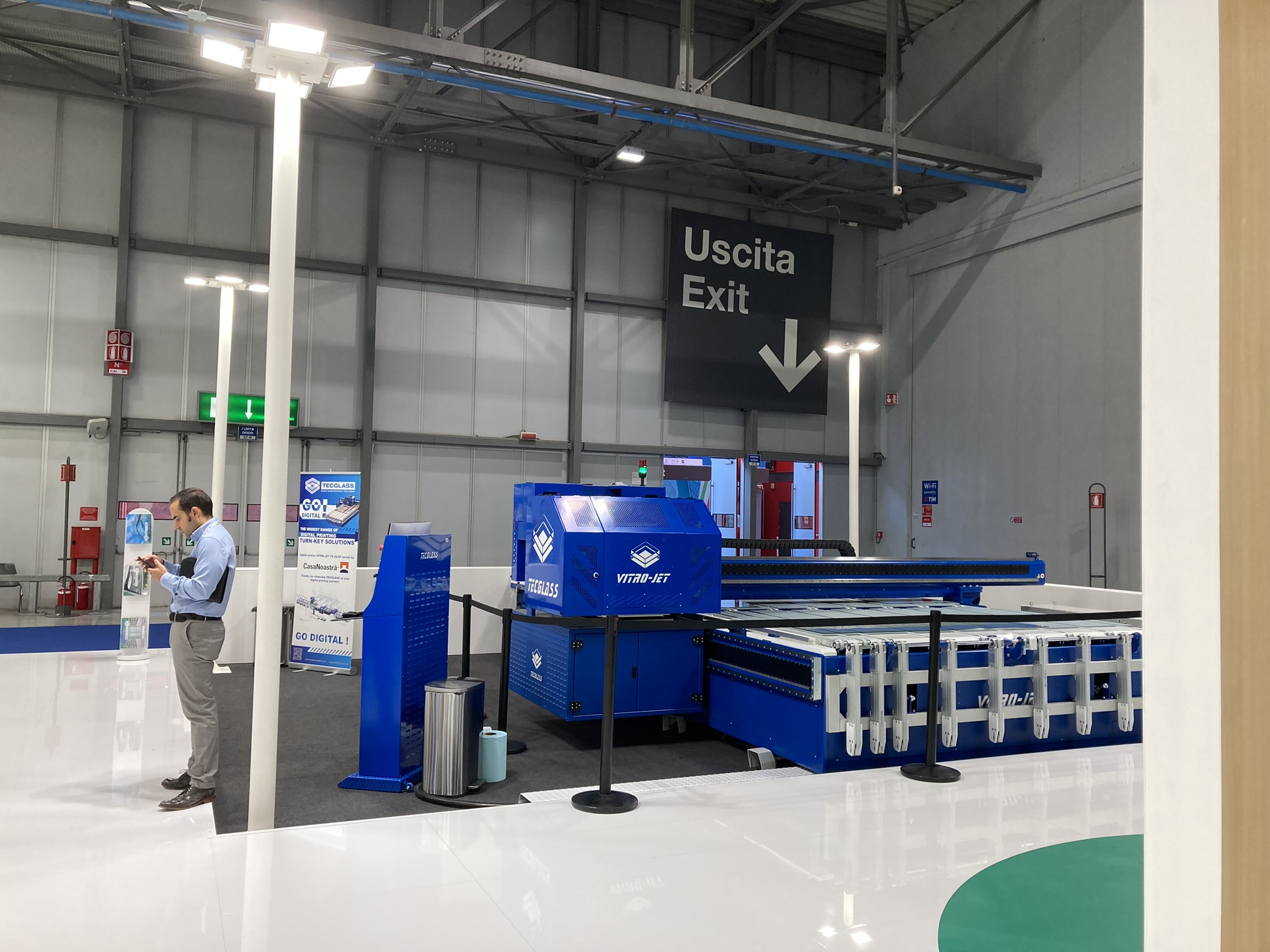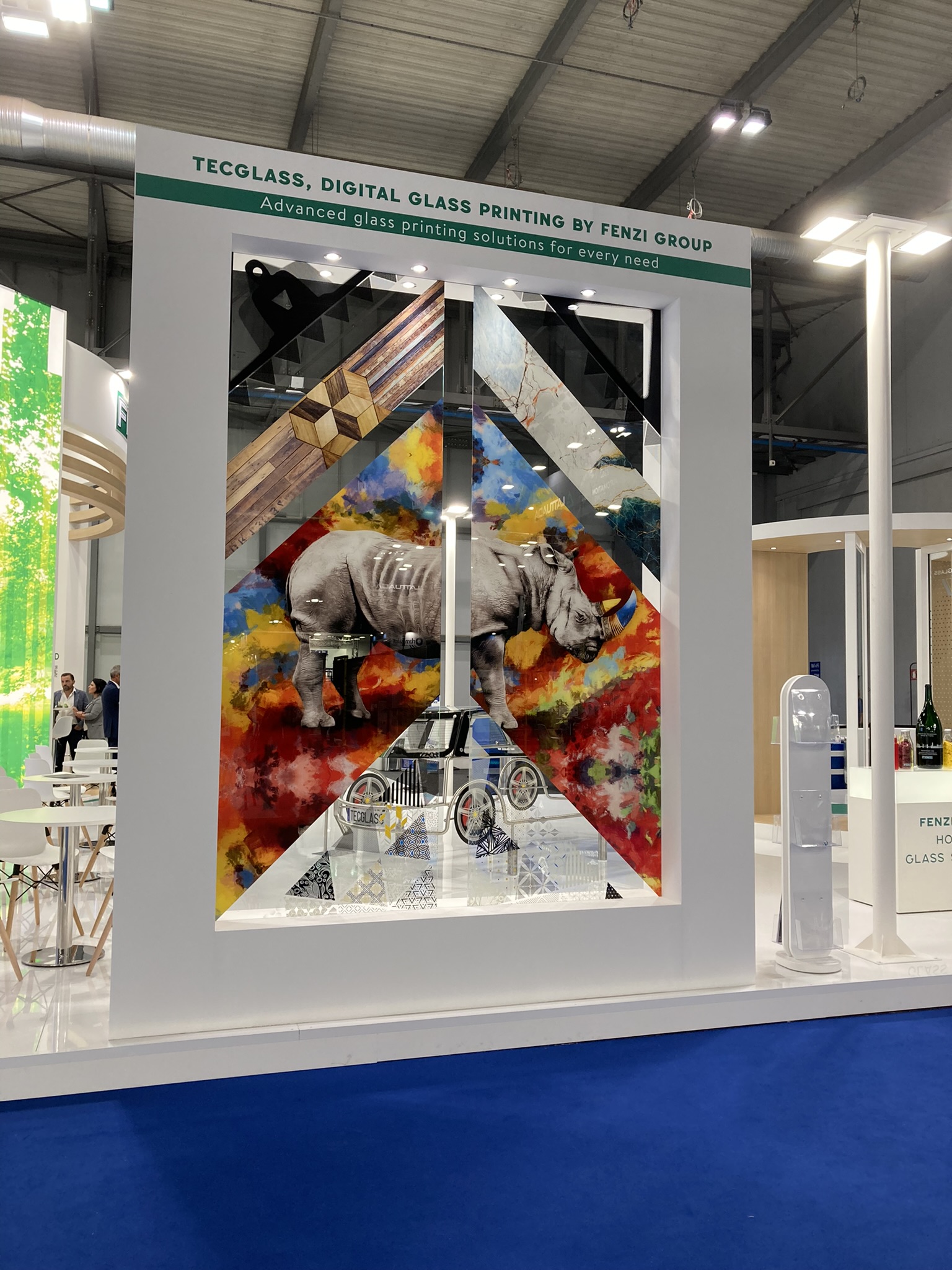 TECGLASS社はイタリアの化学品メーカーであるFENZI社のグループ企業で、Glass Alliance(グラスアライアンス)を構成しています。 VITRUM2023でも同社グループのブースでセラミック印刷機を展示しました。