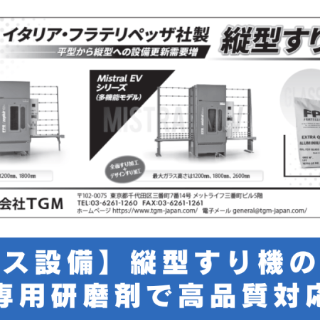 【ガラス設備】縦型すり機の需要増 専用研磨剤で高品質対応