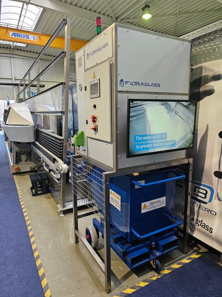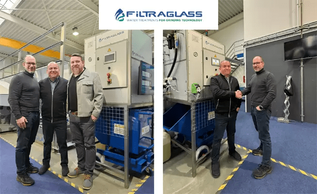 このほどFILTRAGLASS社は、ドイツ北西部のケルンなどの代表的な都市から1時間足らずのデュッセルドルフ地方に位置するグレーヴェンブロイヒにあるBOTTERO GmbH(BOTTERO社のドイツ支社)のショールームに訪問する機会を得ました。この訪問は、FILTRAGLASS社の水処理システムをショールームに設置した両社のコラボレーションの始まりとなりました。この水処理システムがスラッジを含む水の濾過を行い、節水と機械メンテナンスの削減を促進することを実感できる絶好の場となりました。