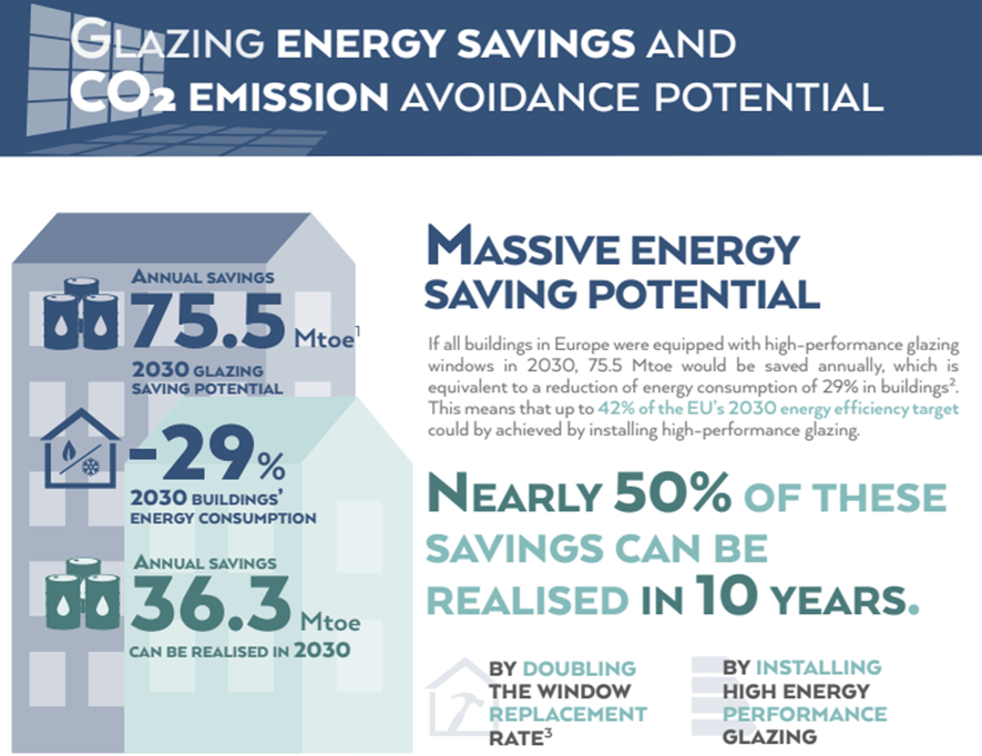 (出典:Glass for Europe; Potential impact of high-performance glazing on energy and CO2 savings in Europe)