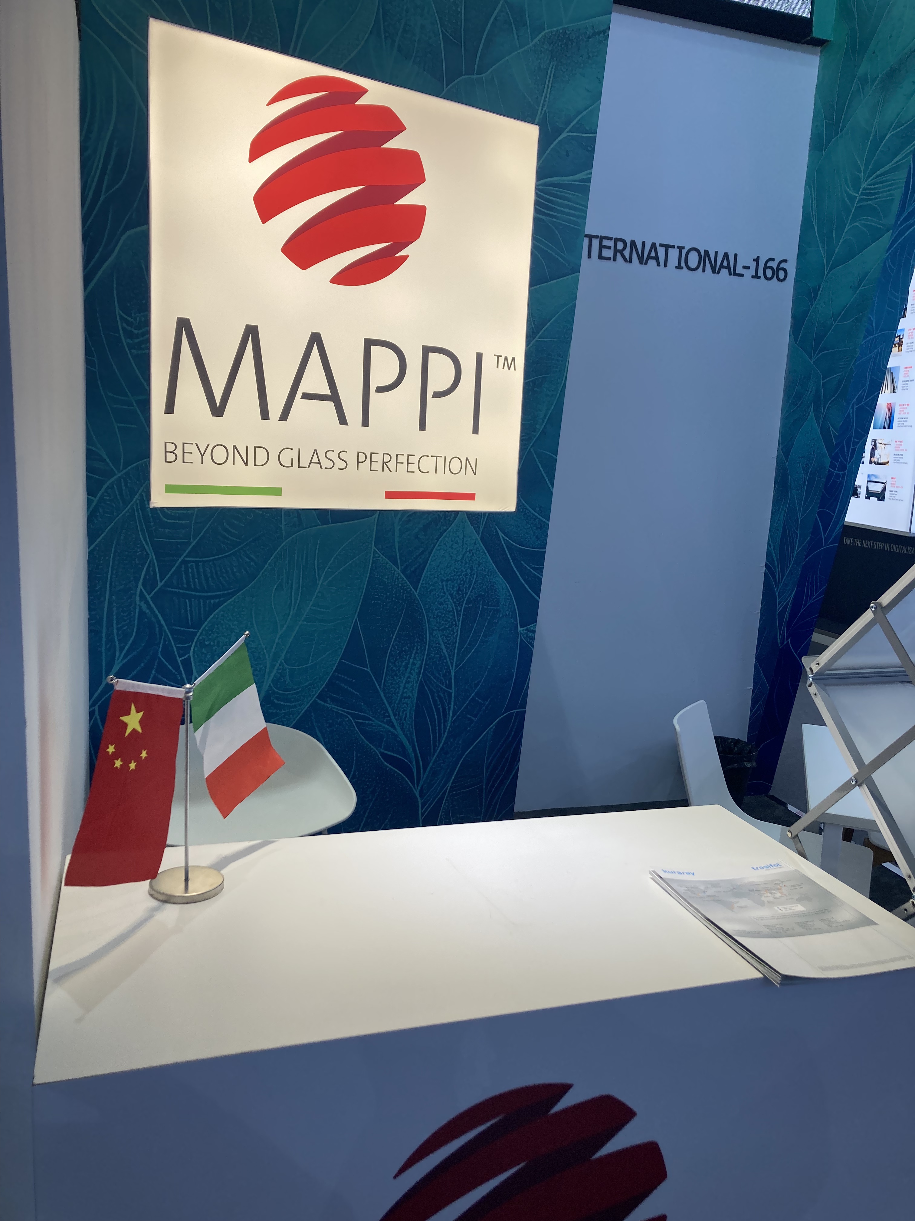 N1ホールでは外国(中国国外)メーカーによる展示がメインとなるホールです。当社と取引のあるメーカーもこのN1ホールにブースを設けて展示をしており、ガラス加工設備メーカーのBOTTERO社及び化学品メーカーのFENZI社が独自にブースを出展しました。イタリアメーカーの多くは、イタリアパビリオンに商談ブースのみ設けており、設備などの実物の展示は行いませんでした。