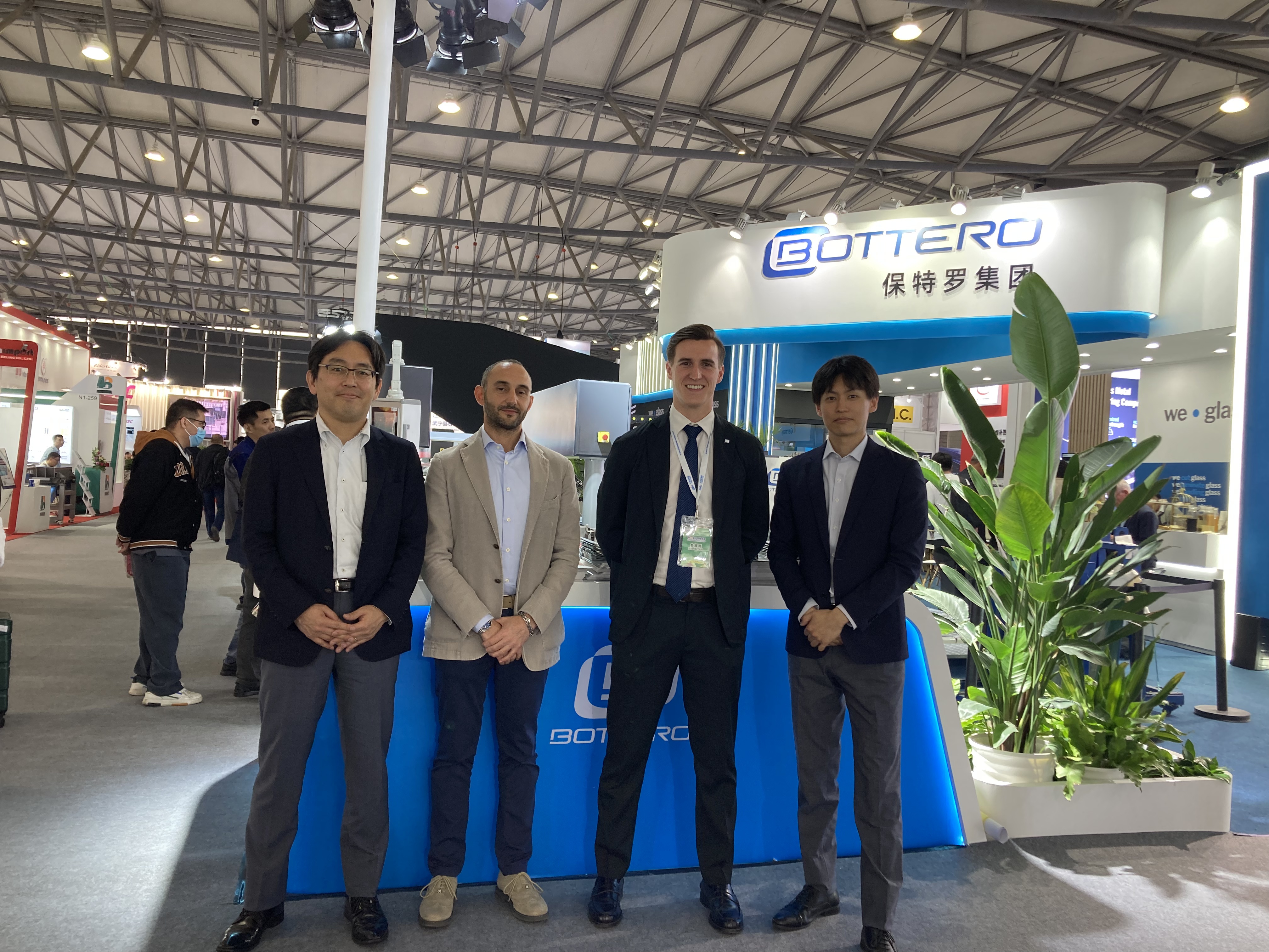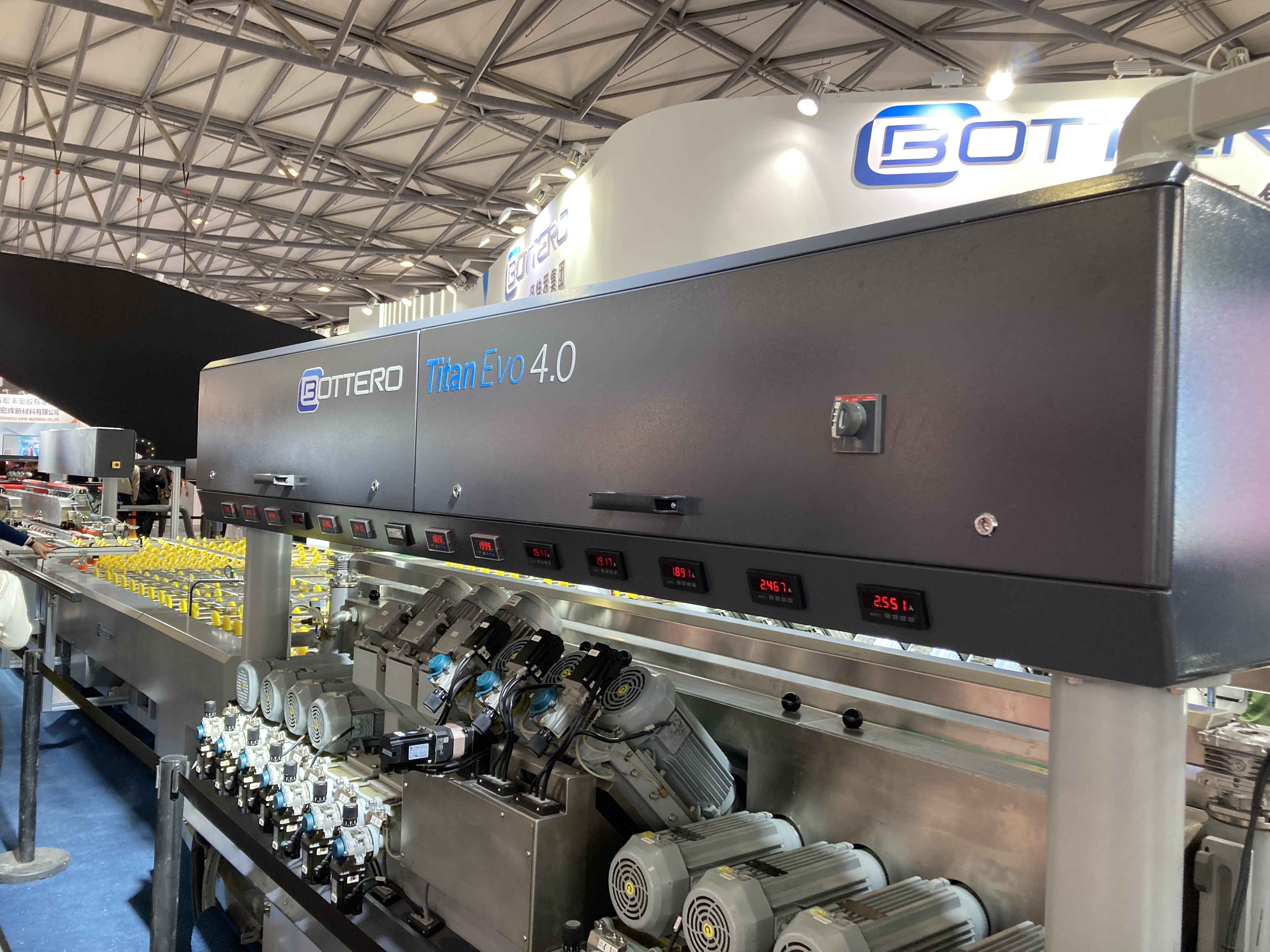 ガラス加工設備メーカーであるBOTTERO社は、中国広東省仏山市に現地法人(BOTTERO Glass Industry社)を有しており、中国において研究開発及び製造を行っていることから、中国国内やアジア地域での存在感を高めています。今回の展示会では、新製品となる直線型のダブルエッジャーTitan EVO 4.0を展示し、実演しました。イタリアからも関係者・営業担当者が訪れており、連日活発な商談が行われました。