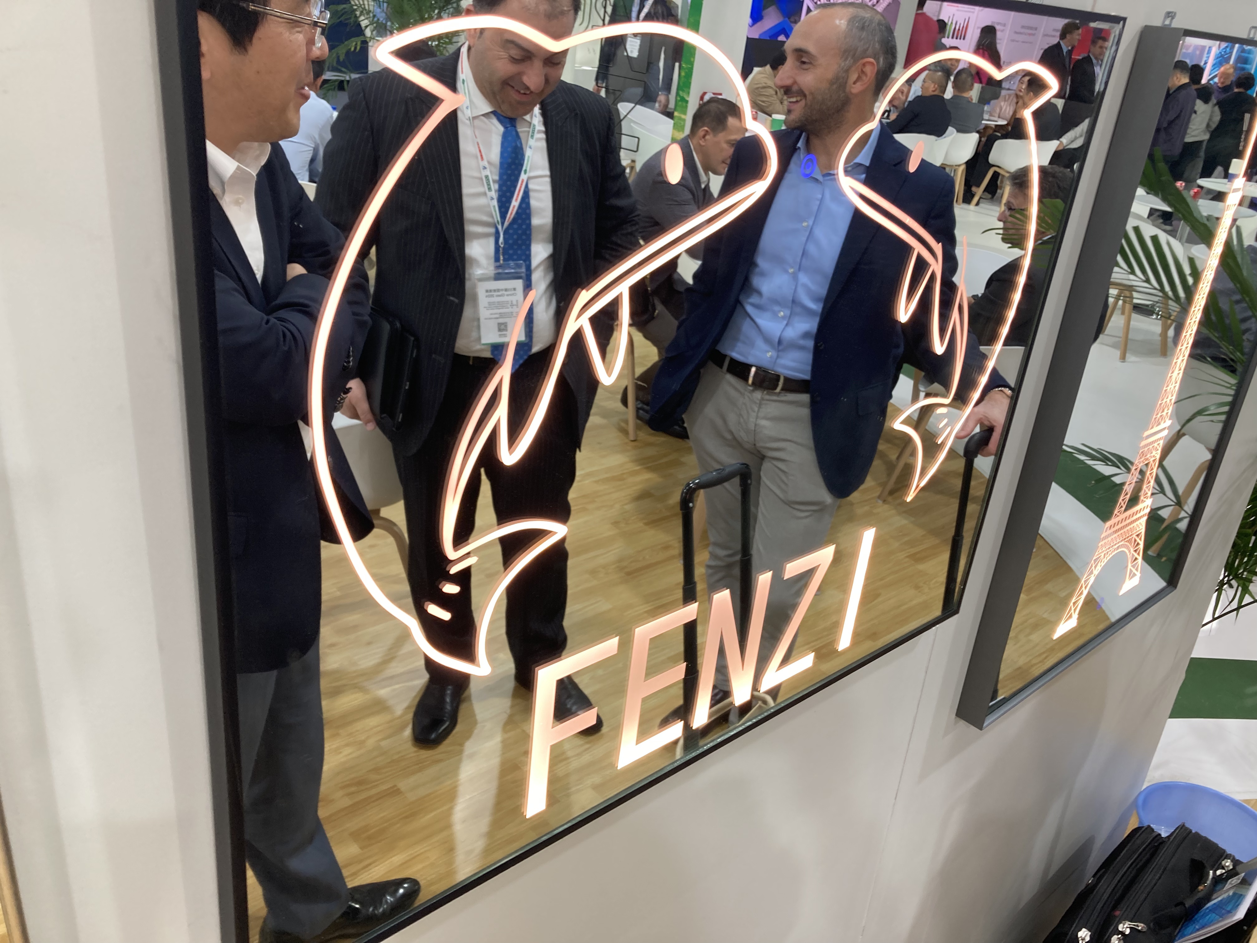 複層ガラス用シール材などを手掛ける化学品メーカーであるFENZI社も、中国浙江省に現地法人(FENZI Paints and Sealants社)を有しています。複層ガラス用シール材の他、ガラス用塗料の製造販売をしており、FENZIブランドの拡大の一翼を担っています。今回の展示会では世界中で加速しつつある熱可塑性樹脂スペーサー材を展示の中心に据え、大規模な商談ブースを構えています。