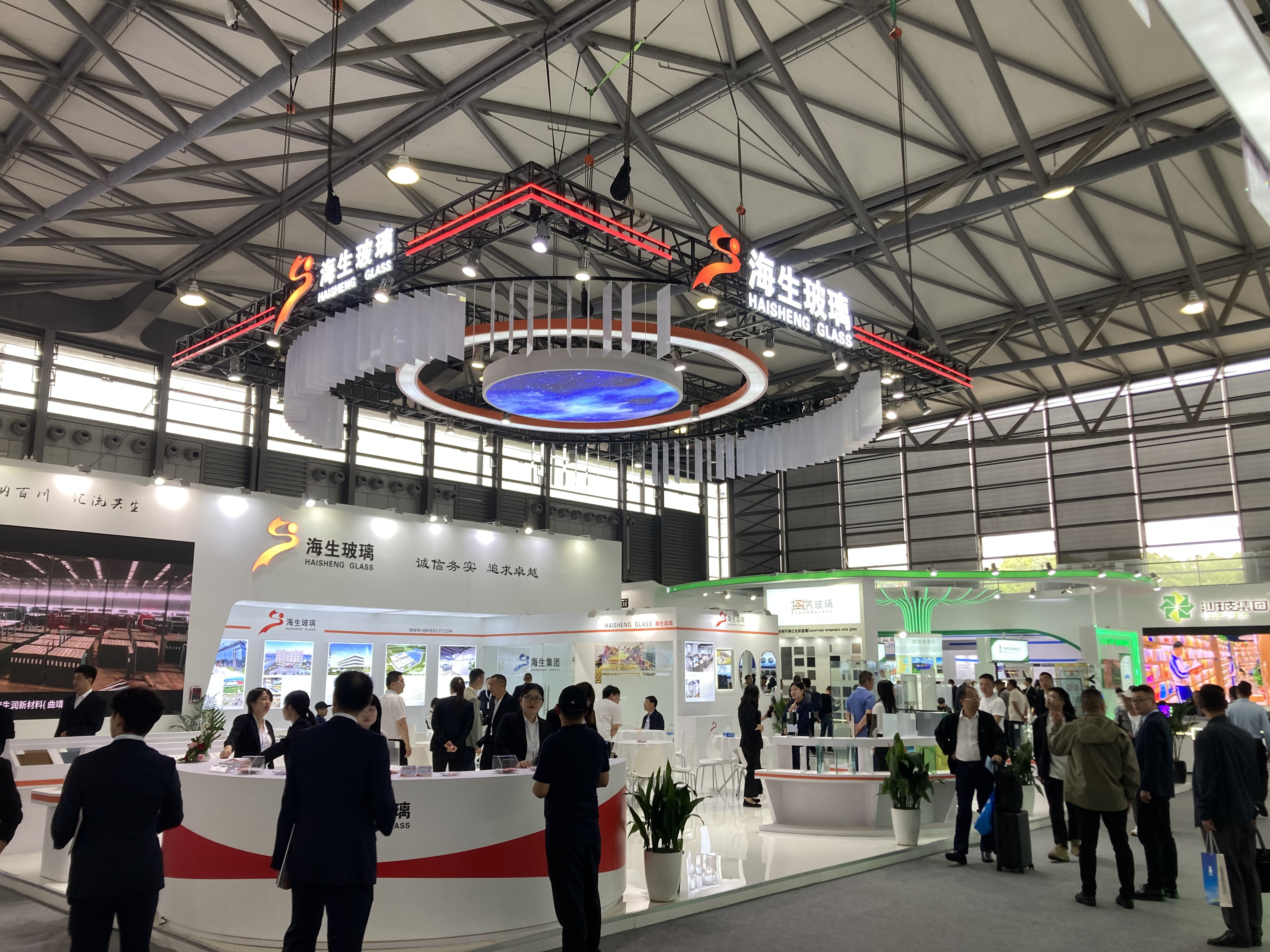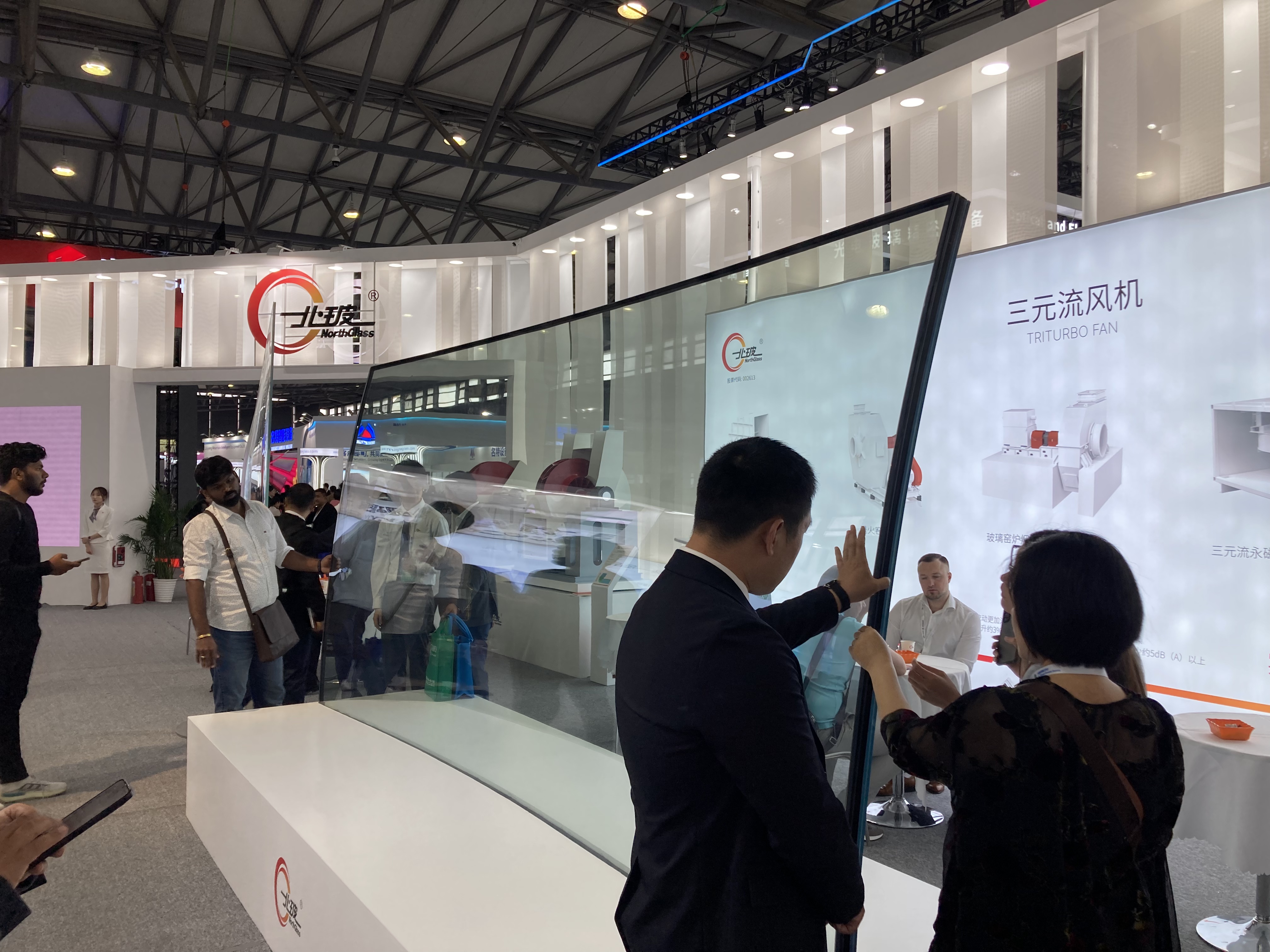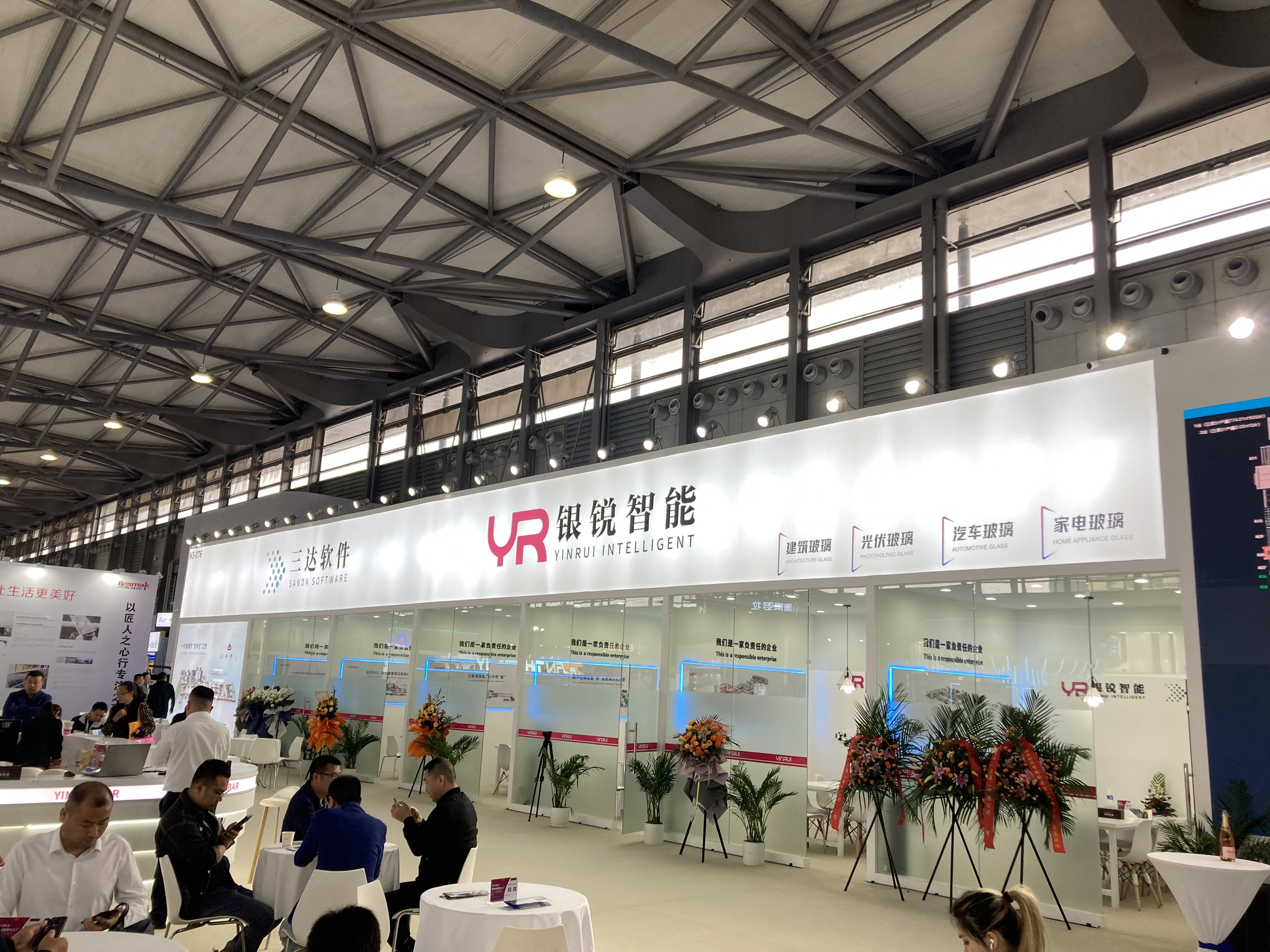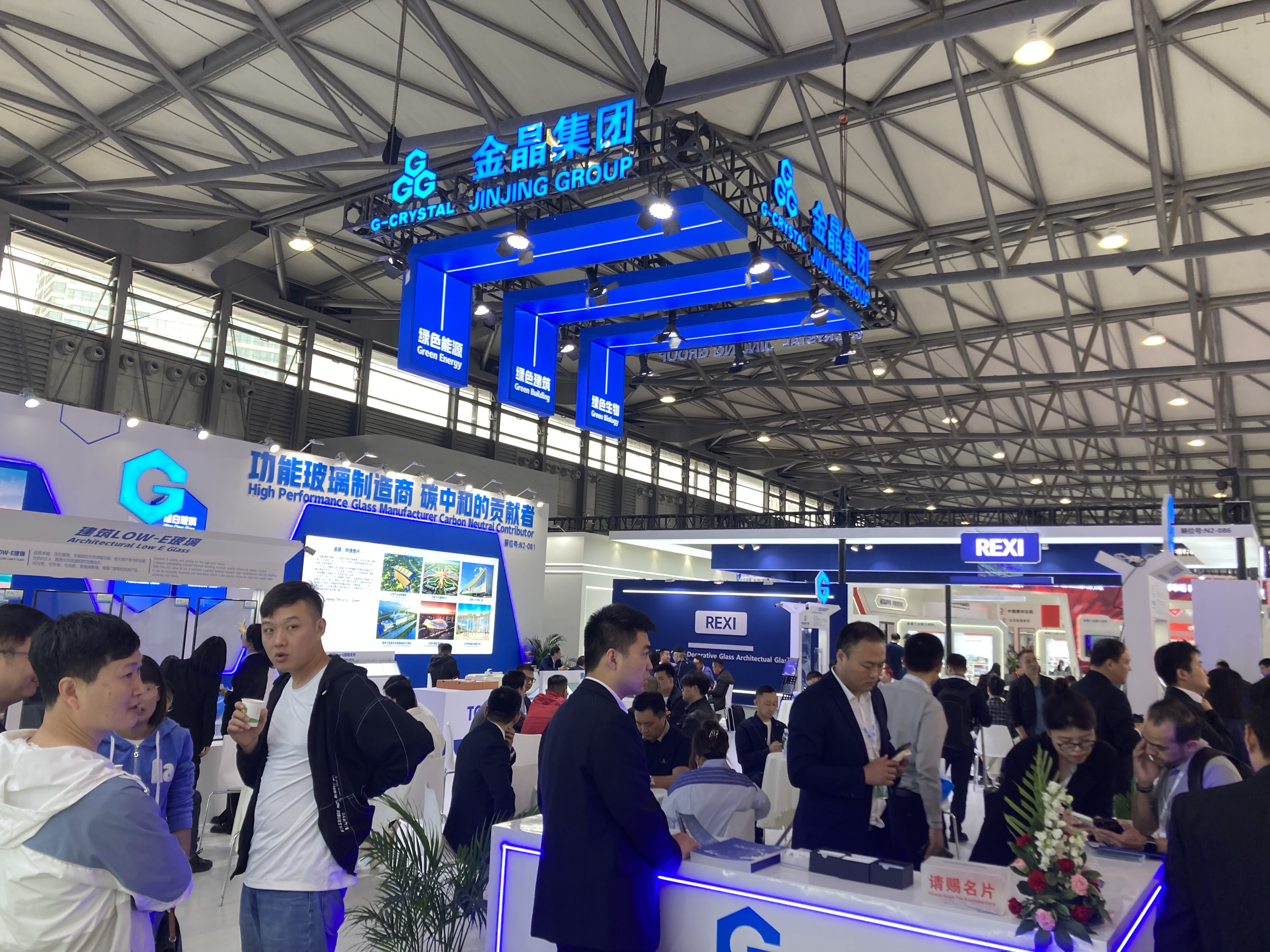 N2ホールでは主に中国のガラスメーカーによる展示がメインとなるホールで、大手ガラスメーカーが大規模なブースを展開していました。合わせ、強化、複層など各社のガラス製品が展示されています。
