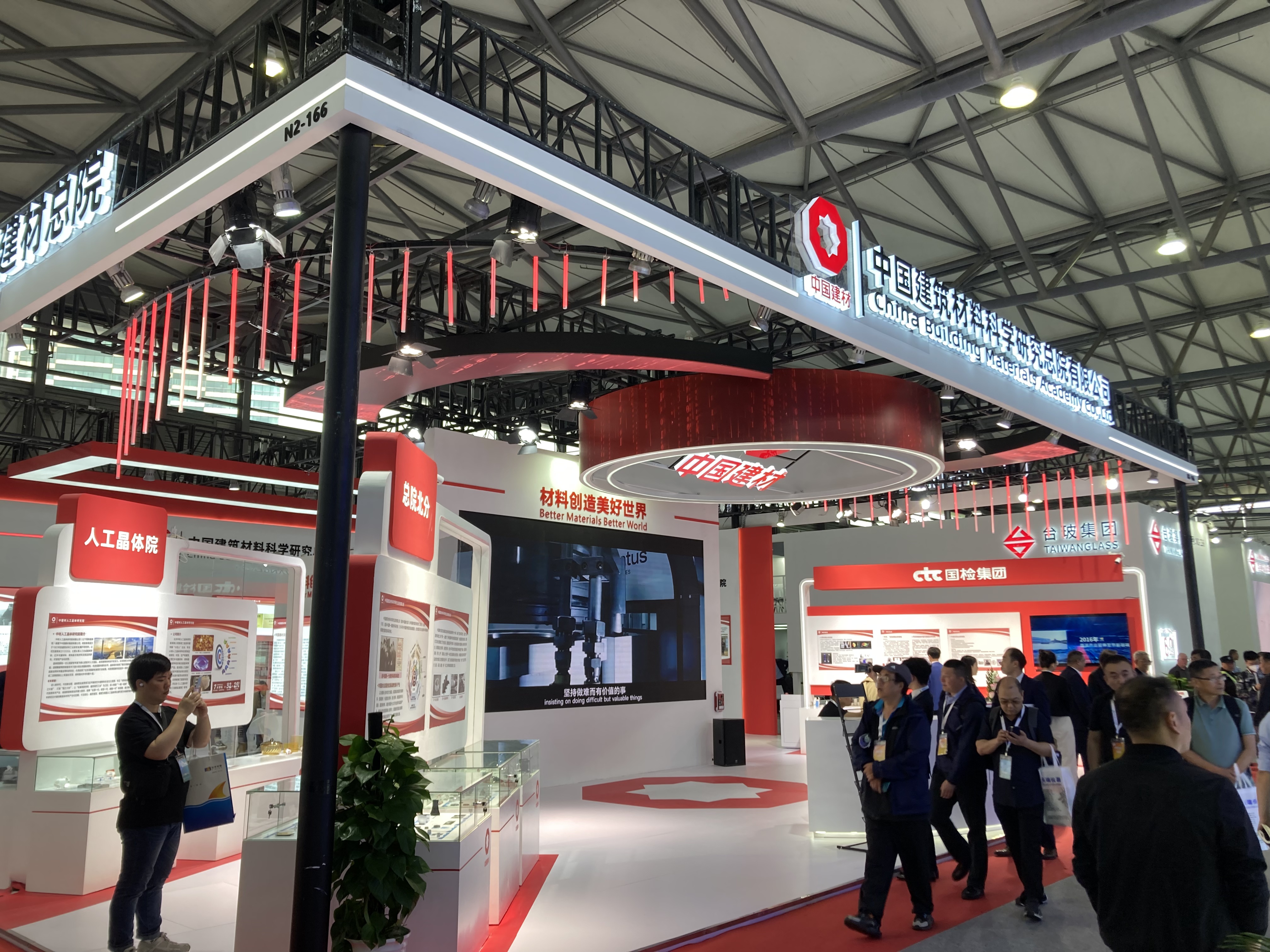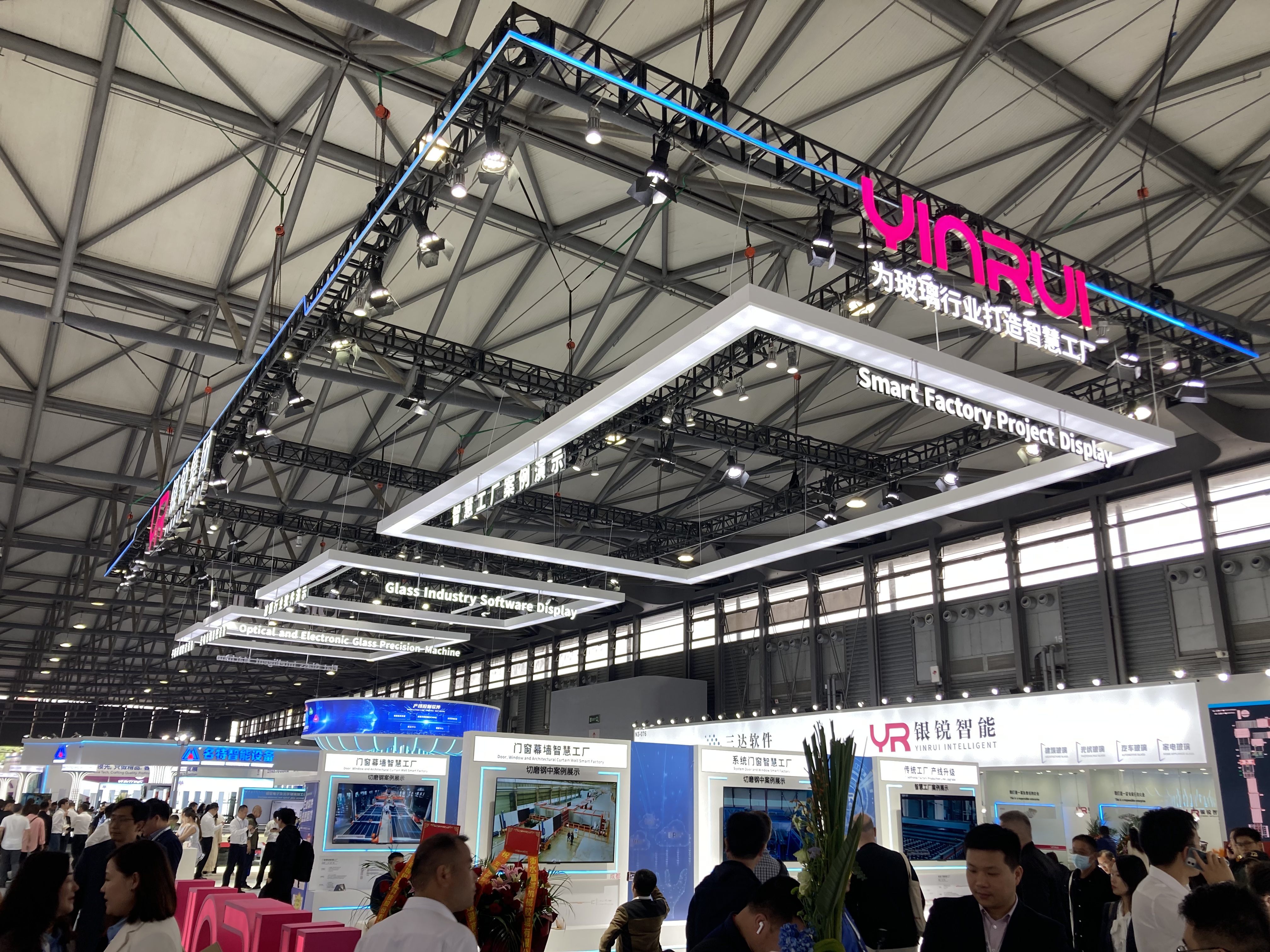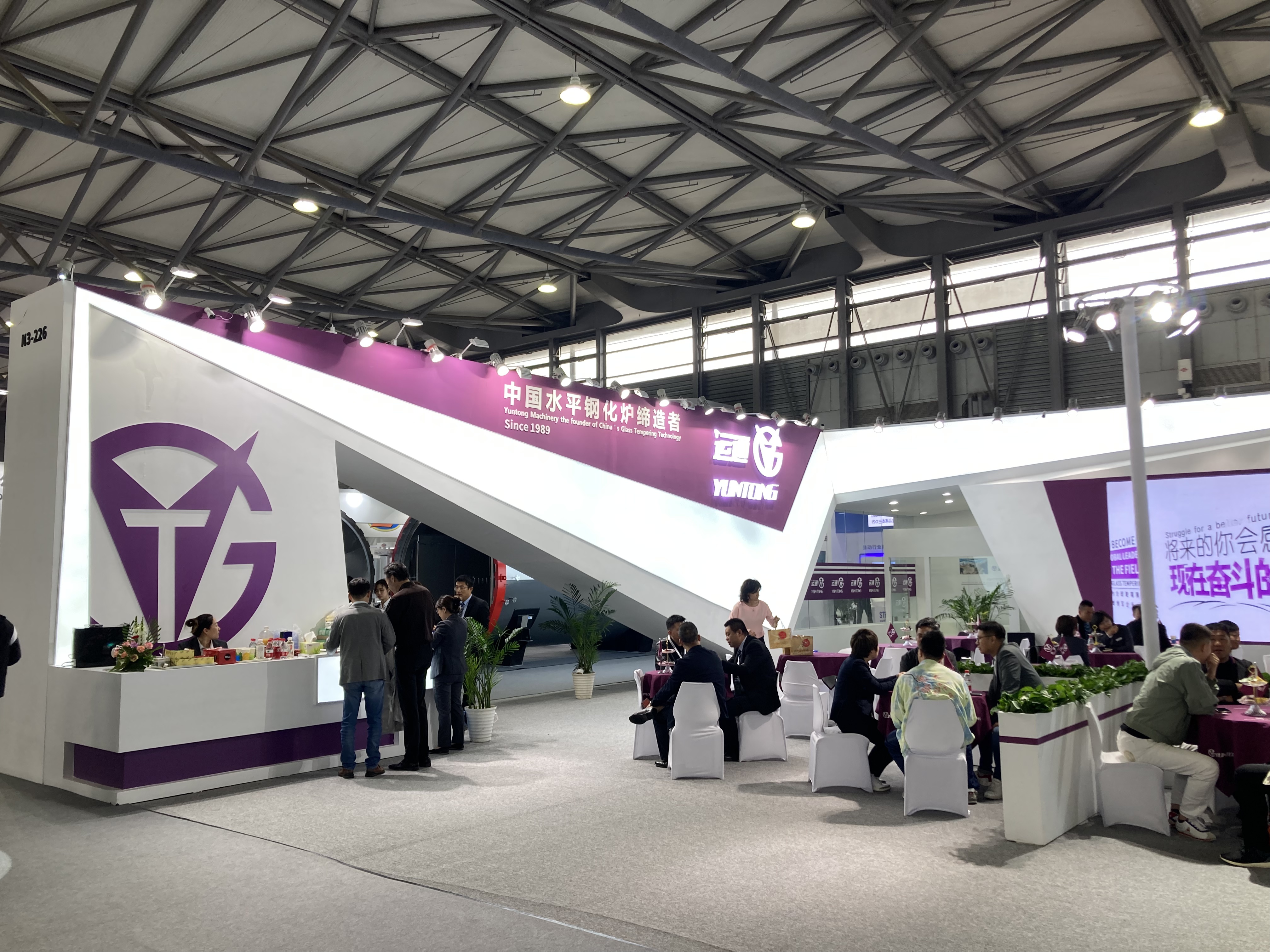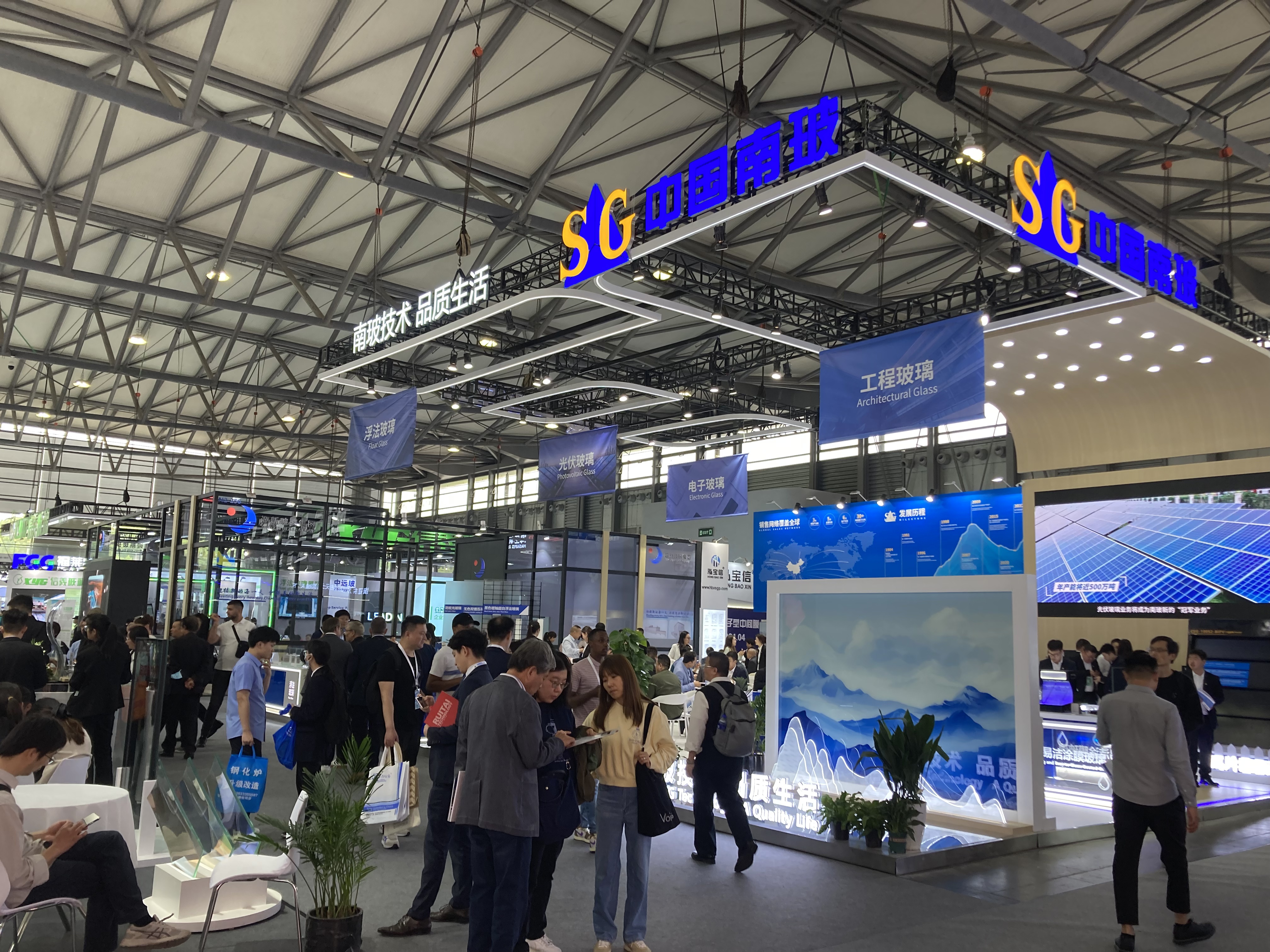N2ホールでは主に中国のガラスメーカーによる展示がメインとなるホールで、大手ガラスメーカーが大規模なブースを展開していました。合わせ、強化、複層など各社のガラス製品が展示されています。