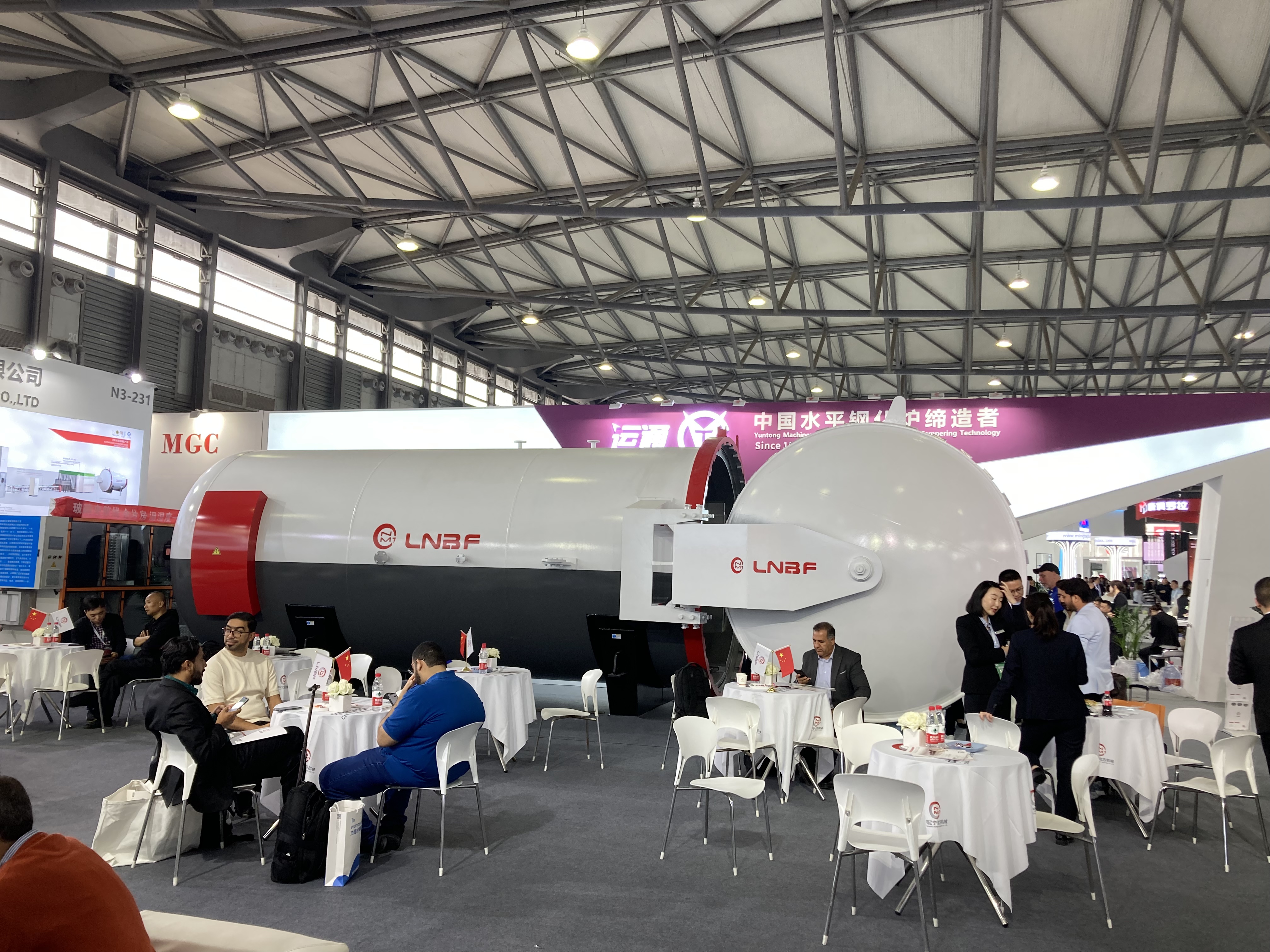 N3ホールでは強化炉メーカー及び耐熱材料メーカーが出展しています。ChinaGlass最大規模となる展示面積を誇るNorthGlass社や、YINRUI社、LandGlass社等が出展しており、活発な商談が繰り広げられていました。N3ホールに展示するメーカーは強化炉を中心にしつつも、総合的な加工設備ラインナップを取り揃えており、総合設備メーカーとして認知されつつあります。その他、耐熱材料として石材・レンガ等の展示も行われていました。
