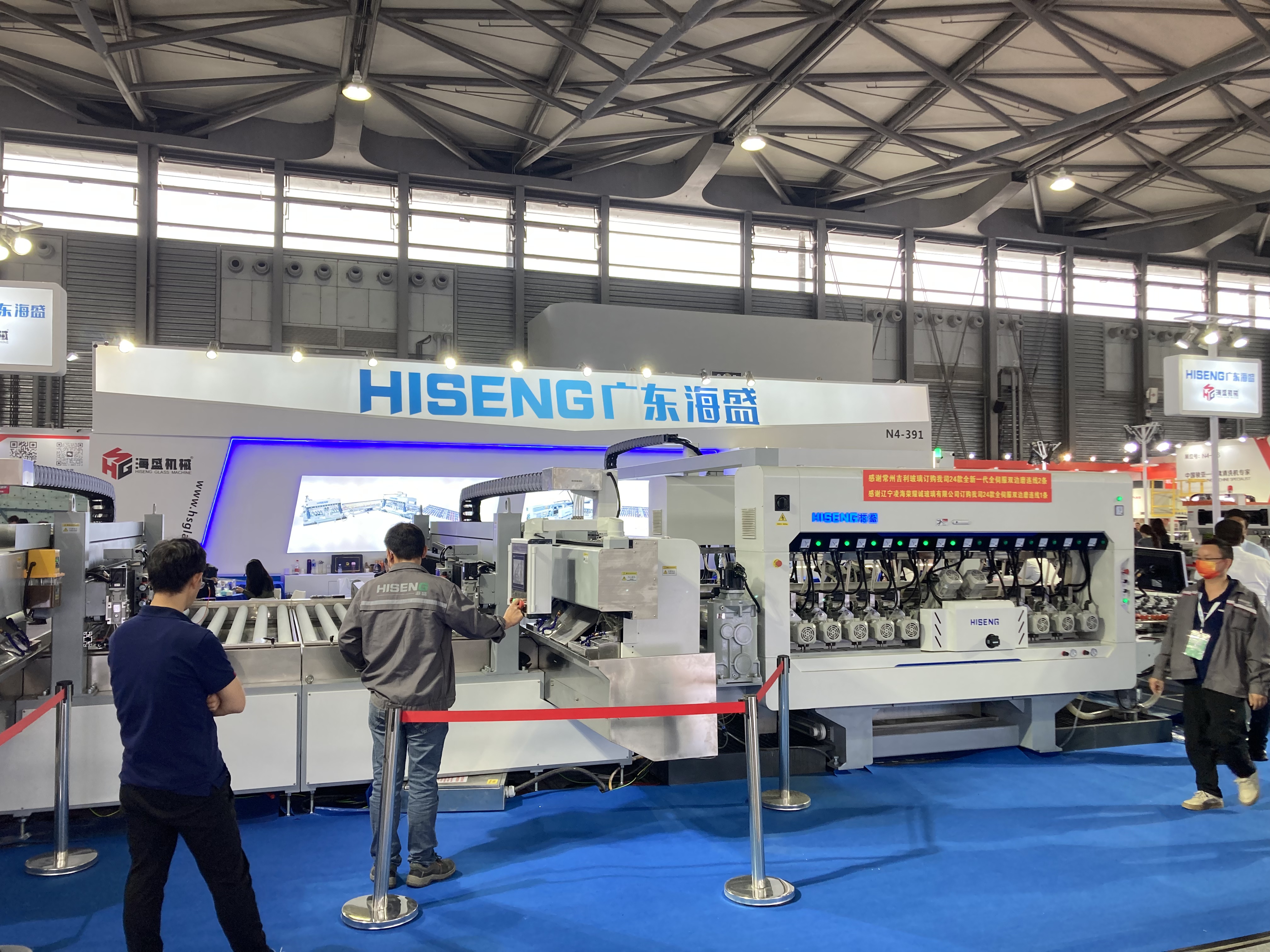 N4ホールでは主に加工設備メーカーが出展しています。N3ホールと同様、ガラス加工にのみフォーカスを当てた設備というよりも総合的な設備紹介がされていました。また、エッジ加工に関しては直線型のダブルエッジャーの展示も多く見られたのが印象的です。
