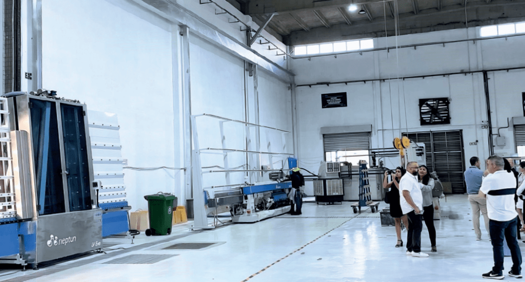 RIOU社がNEPTUN社を選択する理由は非常にシンプルでした。ROCKは、建築市場向けの大型板ガラスの研磨を目的としていますが、研磨の品質が高いため、インテリアや家具にも使用できます。洗浄機は縦型加工機に並んで配置されるように構成され、同社の生産の大部分を担っています。LV EVO縦型洗浄機は厚さ30 mmまでのガラスを洗浄できるPLC管理の全自動式の中間モデルです。どちらの設備にもリモートアシスタンスモジュールが搭載されており、障害時の迅速な診断に有効です。NEPTUN社は、RIOU社の信頼を維持し、このような勢いのあるグループの成長に継続的に関わっていくことを約束し、式典のスポンサーにもなりました。