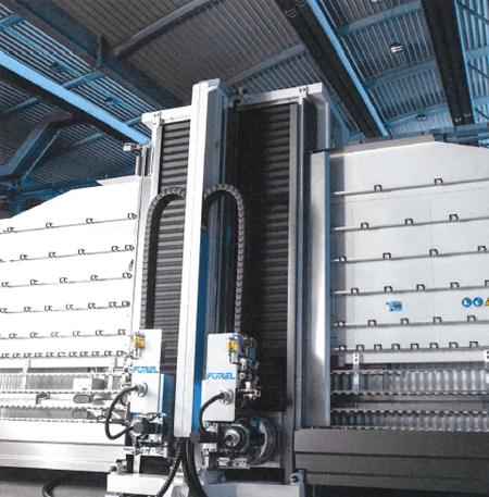 生産完了した複層ガラスを効率的に分類、アンローディングするのに非常に効果的な解決策です。 個別IDで仕分けすることで、ラック内の最終出荷に関連するすべての完成品を集約することができます。