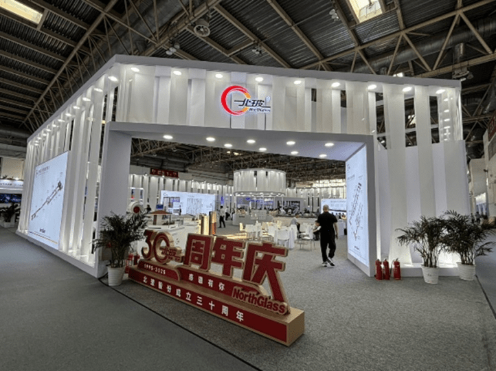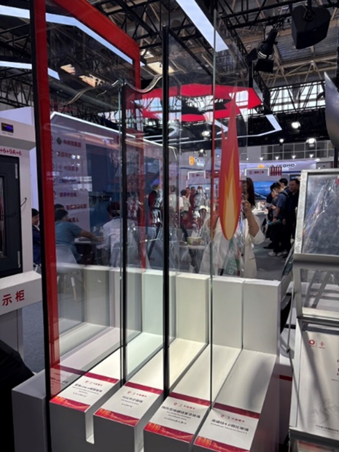 E2ホールでは主に中国のガラスメーカーによる展示がメインとなるホールで、規模の大きなブースがひときわ目を引く構成となっていました。 特に、中国の国営企業をはじめとする主要企業が集まり、それぞれ独自の技術を活かしたガラス製品を展示していました。