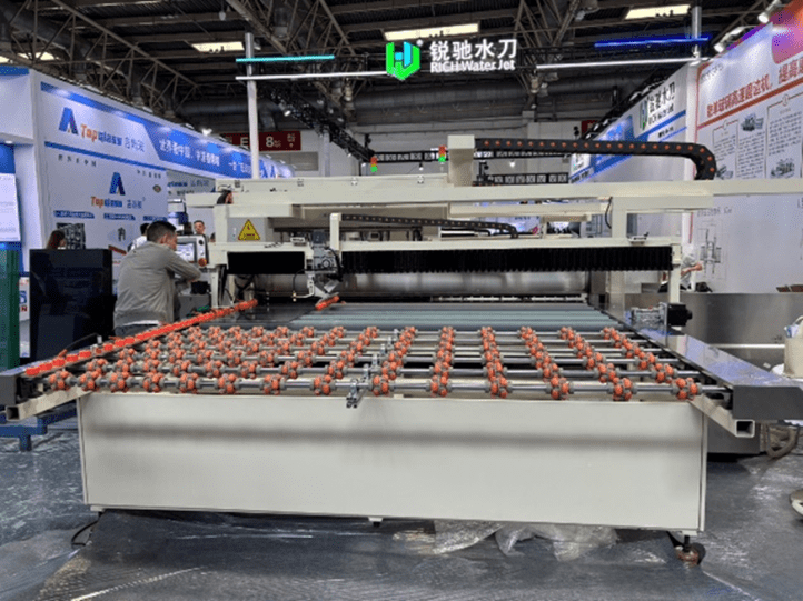 E4ホールでは、主にガラス加工設備メーカーが出展されていましたが、加工設備の展示にとどまらず、ハンドリングシステムや加工ツール、および水処理装置や検査装置など、幅広い技術が紹介されていました。 各ブースでは最新の設備や技術が実演されており、それぞれのメーカーが独自のアプローチで市場のニーズに応えようとしている様子が伺えました。