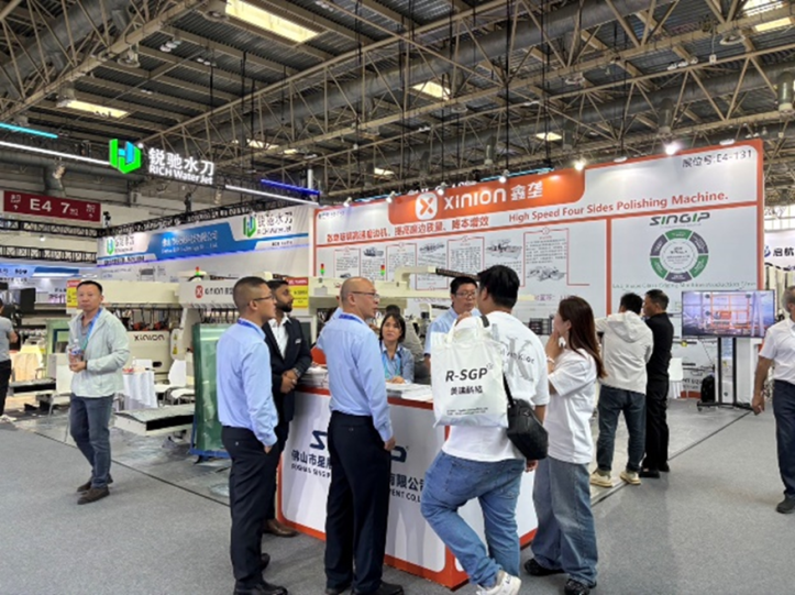 E3ホールでは、強化炉メーカーをはじめとする中国の大手ガラス加工メーカーが一堂に会し、最新の技術や製品が展示されました。 China Glass最大規模の展示面積を誇るNorthGlass社とYINRUI社を筆頭に、Mountain社、LandGlass社、Southglass社などの主要メーカーが出展し、各ブースで活発な商談が行われていました。