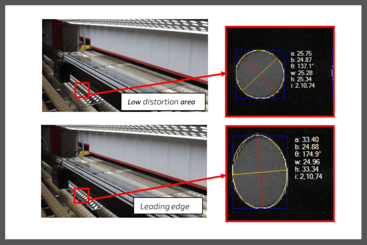 ガラス製造・加工環境は、ペースが速く、予測不可能な場合があります。コンベヤの滑り、ローラーの凹凸、振動などの要因は、データを帯状にキャプチャする従来のラインスキャンシステムにとって大きな課題となります。これらのシステムは外部からの影響を受けやすく、測定の精度が低下し、一貫性のない結果につながる可能性があります。