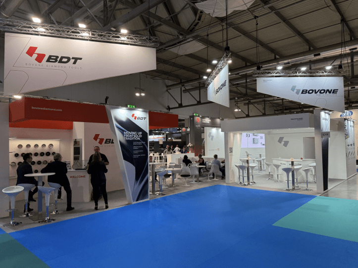 VITRUM 2025では、イタリアのガラス加工機メーカーBOTTERO社が、業界の未来を見据えた技術革新と持続可能性、自動化を軸にした取り組みを大々的に発表していました。展示では、最新の加工機やソリューションが紹介されるだけでなく、同社本社(Cuneo:ピエモンテ州南部にある都市)での技術ワークショップやデモンストレーションも実施されており、板ガラス加工を実際に体験することができました。VITRUM会場からは専用シャトルバスも運行され、来場者の利便性にも配慮されていました。