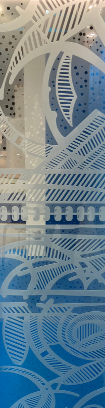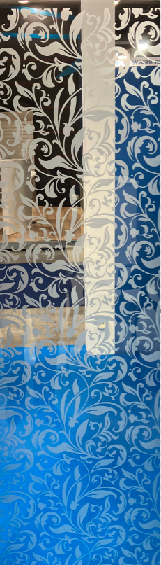 また、今回の展示では「MultiShading」技術が大きな話題となりました。この機能により、ガラスを回転させることなく縦方向のグラデーション加工が可能となり、円形、同心円、段階的な装飾など、これまでにない自由度の高いデザイン表現が実現されました。この機能は、バルコニー用ガラス、パーティション、装飾ミラーなど、意匠性を求められる製品への応用が広がっています。
