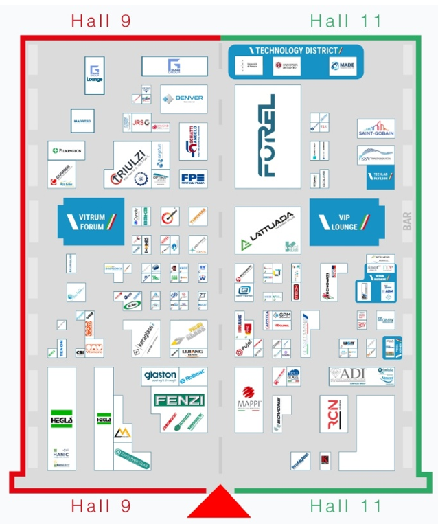 VITRUMは、主に板ガラス・瓶ガラス加工に関連した設備、ソフトウェア、副資材メーカーなどが出展を行う国際展示会で、2年に一度イタリア・ミラノ市内の展示会場(Fiera Milano Rho)で開催されています。本展示会はGIMAV(イタリアのガラス加工設備、材料、製品メーカー協会)によって出資された非営利団体によって運営されており、今年で24回目の開催となりました。