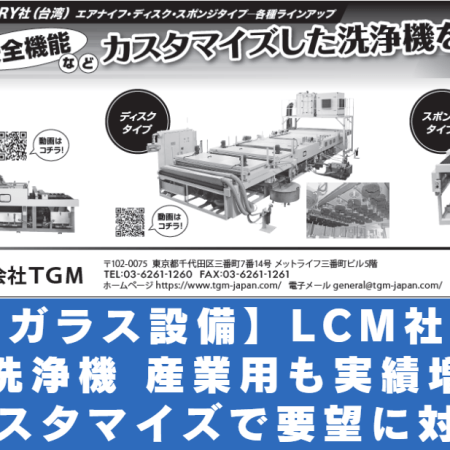 【ガラス設備】LCM社:洗浄機 産業用も実績増 カスタマイズで要望に対応