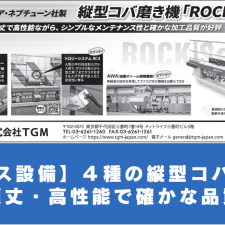 【ガラス設備】4種の縦型コバ磨き機 頑丈・高性能で確かな品質